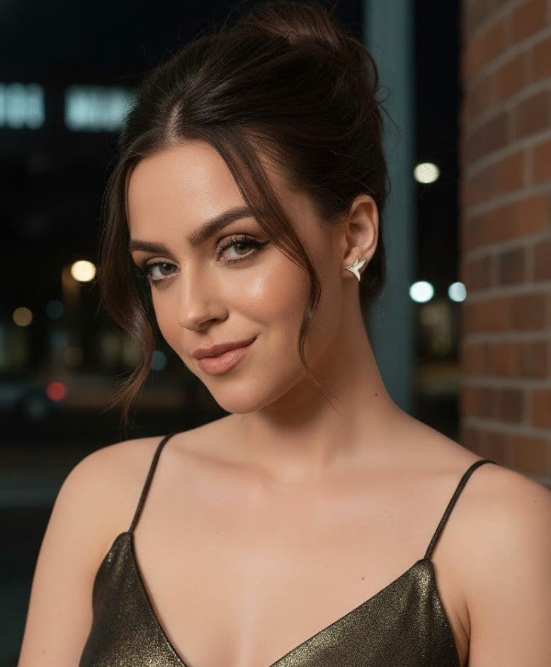 أضف توهجًا ناعمًا وطبيعيًا إلى أسلوبك مع هذه الأقراط المرصعة على شكل طائر طنان من عرق اللؤلؤ. تم تصميم كل طائر طنان بتصميم بسيط، وهو مرصع بعرق اللؤلؤ اللامع، مما يخلق وميضًا لطيفًا يجذب الضوء بشكل جميل. توفر هذه الأقراط أناقة راقية مستوحاة من الطبيعة، مثالية لإضافة لمسة من الرقي إلى أي ملابس. خفيفة الوزن ومتعددة الاستخدامات، وهي مثالية للارتداء اليومي أو المناسبات الخاصة. ارتديها مع القلادة المطابقة للحصول على مظهر متماسك خالد وأنيق دون عناء.