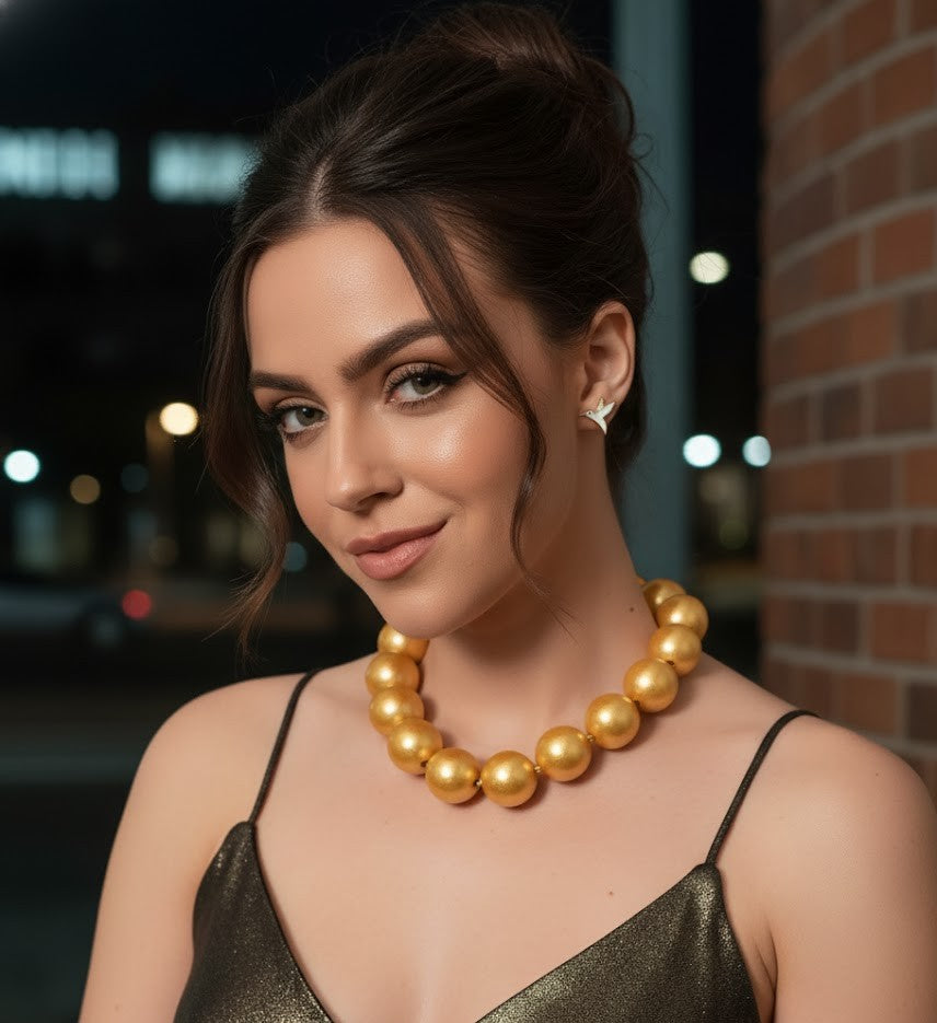 تمتع بالأناقة الخالدة مع قلادة Golden Glow ذات الخرز. تتميز هذه التحفة الفنية ذات الجديلة الواحدة بخرزات ذهبية مشعة تتلألأ بلمعان رقيق، مما يضيف لمسة من الرقي إلى أي ملابس. خفيف الوزن ومتعدد الاستخدامات، فهو ينتقل بسلاسة من ملابس النهار إلى ملابس المساء.