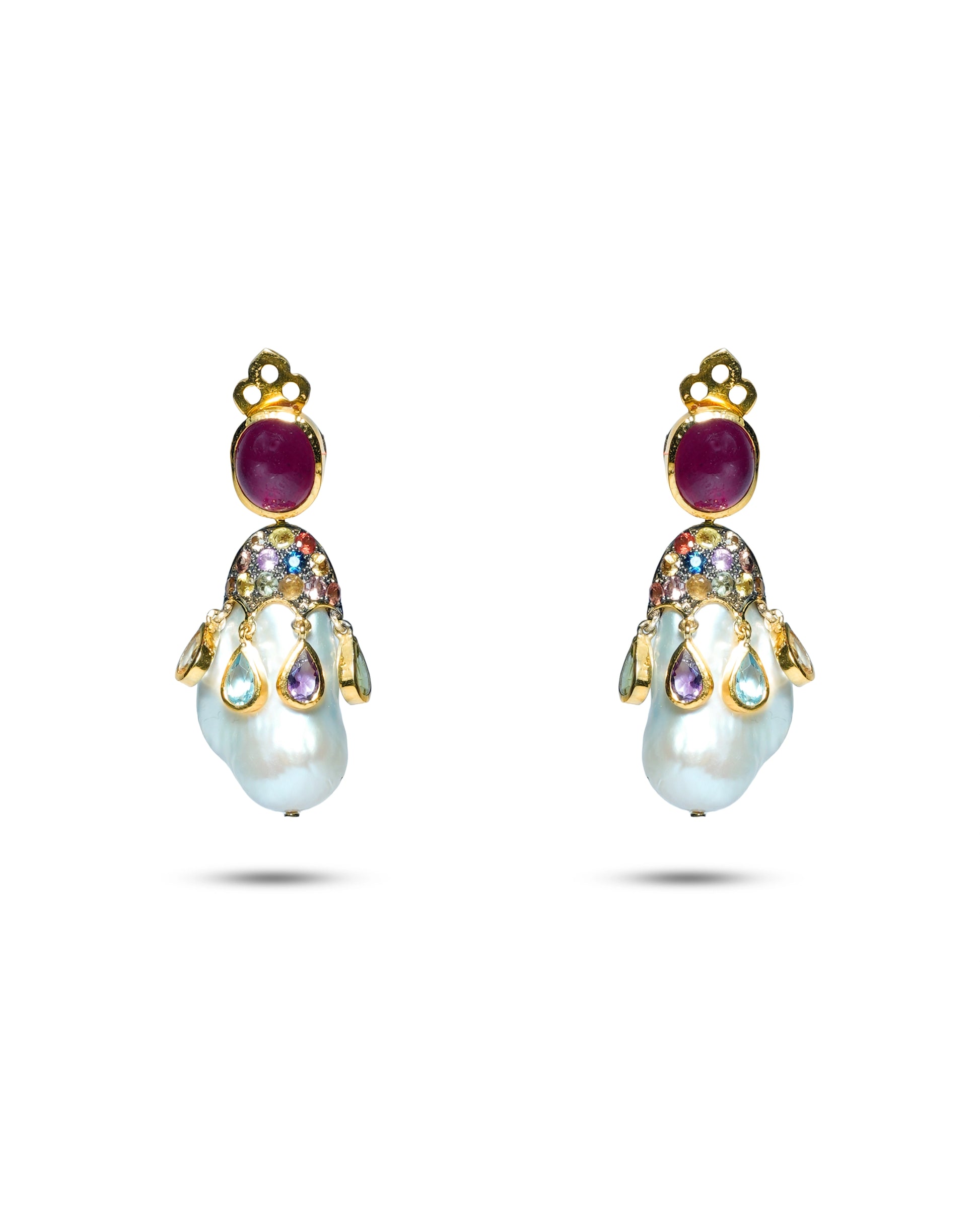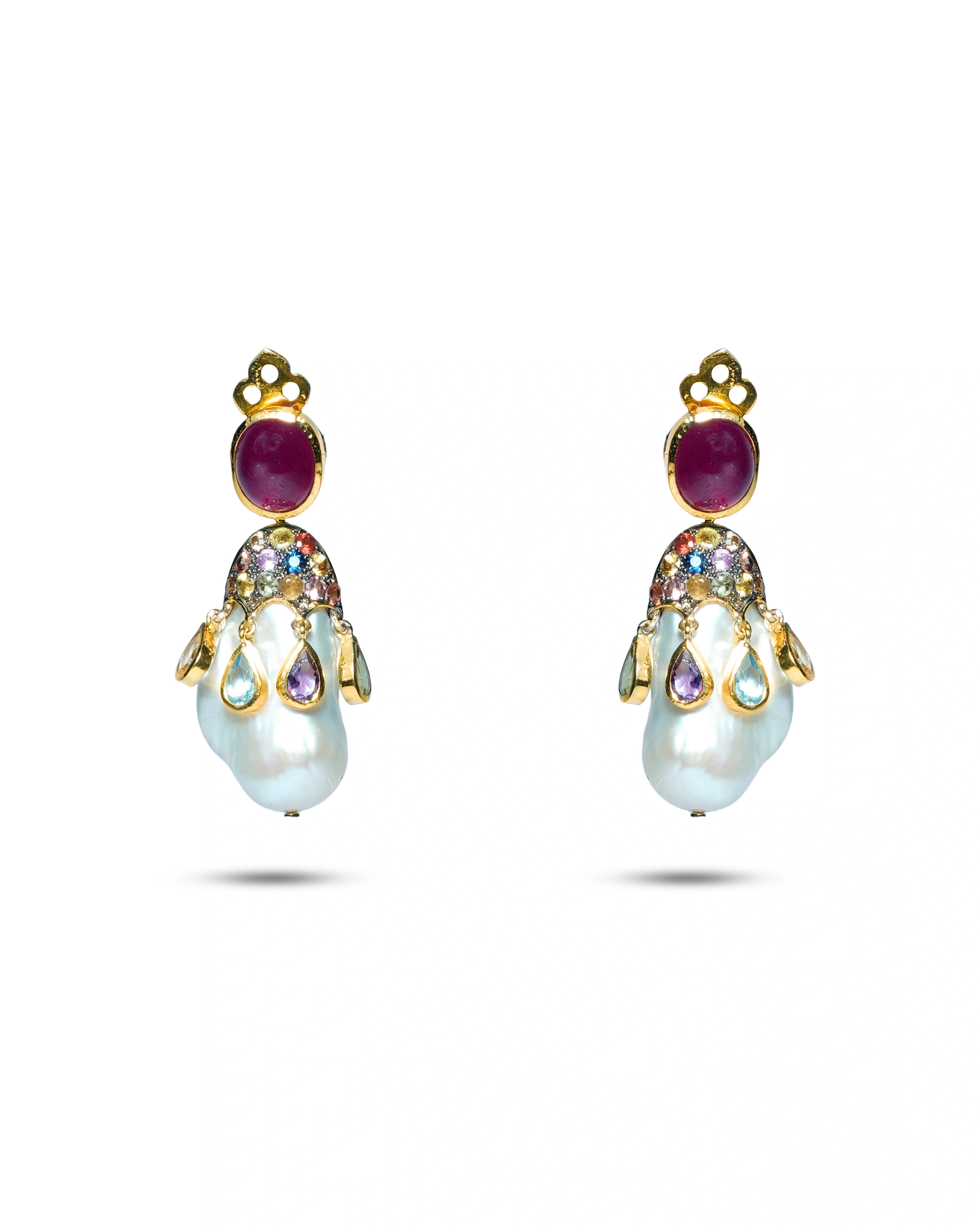 Jewellery Material- Gold Plated 92.5 Sterling Silver with Ruby, Coloured Sapphires and Pearls