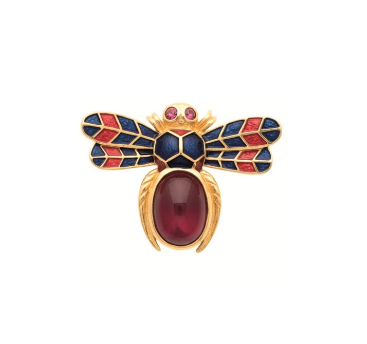 This captivating and charming bee pendant, expertly crafted to showcase vibrant enamel wings with intricate detailing. The bee's body is adorned with a striking Gemstone, radiating a rich hue that adds a touch of royalty and sophistication. Set in a luxurious gold-tone finish, this pendant combines the beauty of nature with timeless elegance. Perfect for adding a whimsical yet refined touch to any outfit, this pendant is a statement piece that exudes charm and style. A delightful choice for those who appreciate unique, nature-inspired jewelry.